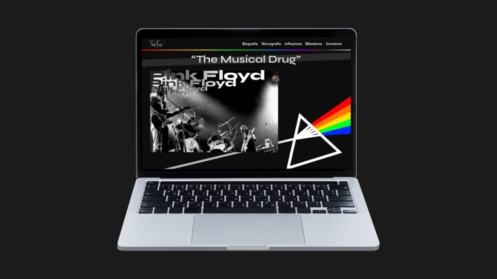 Proyecto de diseño y desarrollo de una landing page dedicada a Pink Floyd, pensada exclusivamente para visualización en ordenadores.