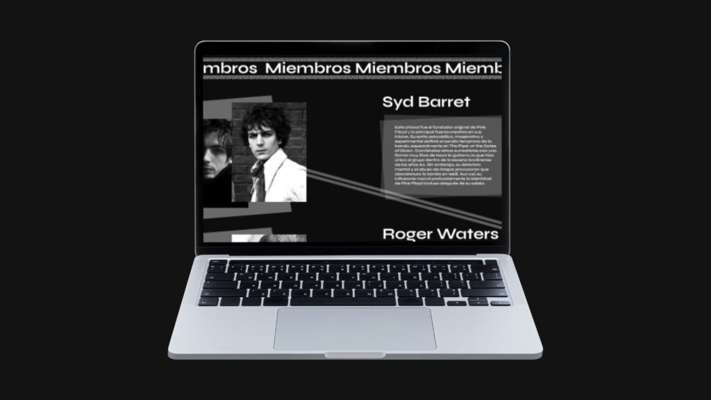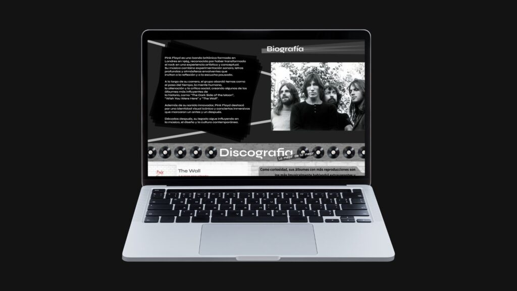 La landing nace como una propuesta para presentar de forma estructurada el universo de Pink Floyd, organizando la información en bloques diferenciados pero conectados entre sí.