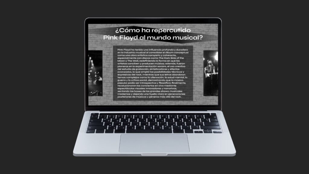 Más allá del contenido informativo, el objetivo fue generar una experiencia visual alineada con el universo artístico de Pink Floyd.